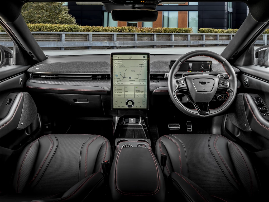 All Mach-e models come with plenty of equipment, with standard features including LED headlights, Mustang LED rear lights, 18-inch alloy wheels, heated front seats and a heated steering wheel. You also get a 10.2-inch digital instrument cluster and a large 15.5-inch portrait touchscreen including satellite navigation and FordPass Connect. Other features include a reversing camera, adaptive cruise control, wireless smartphone charging, keyless entry, dual-zone climate control and blind spot monitoring.