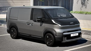 Kia's first dedicated electric van is built on a modular platform, allowing for various body styles including Cargo and Passenger versions. It offers a maximum range of 258 miles with the long-range battery and can carry a payload of up to 790 kg. The PV5 features a clean and minimalist cabin with a large touchscreen display.